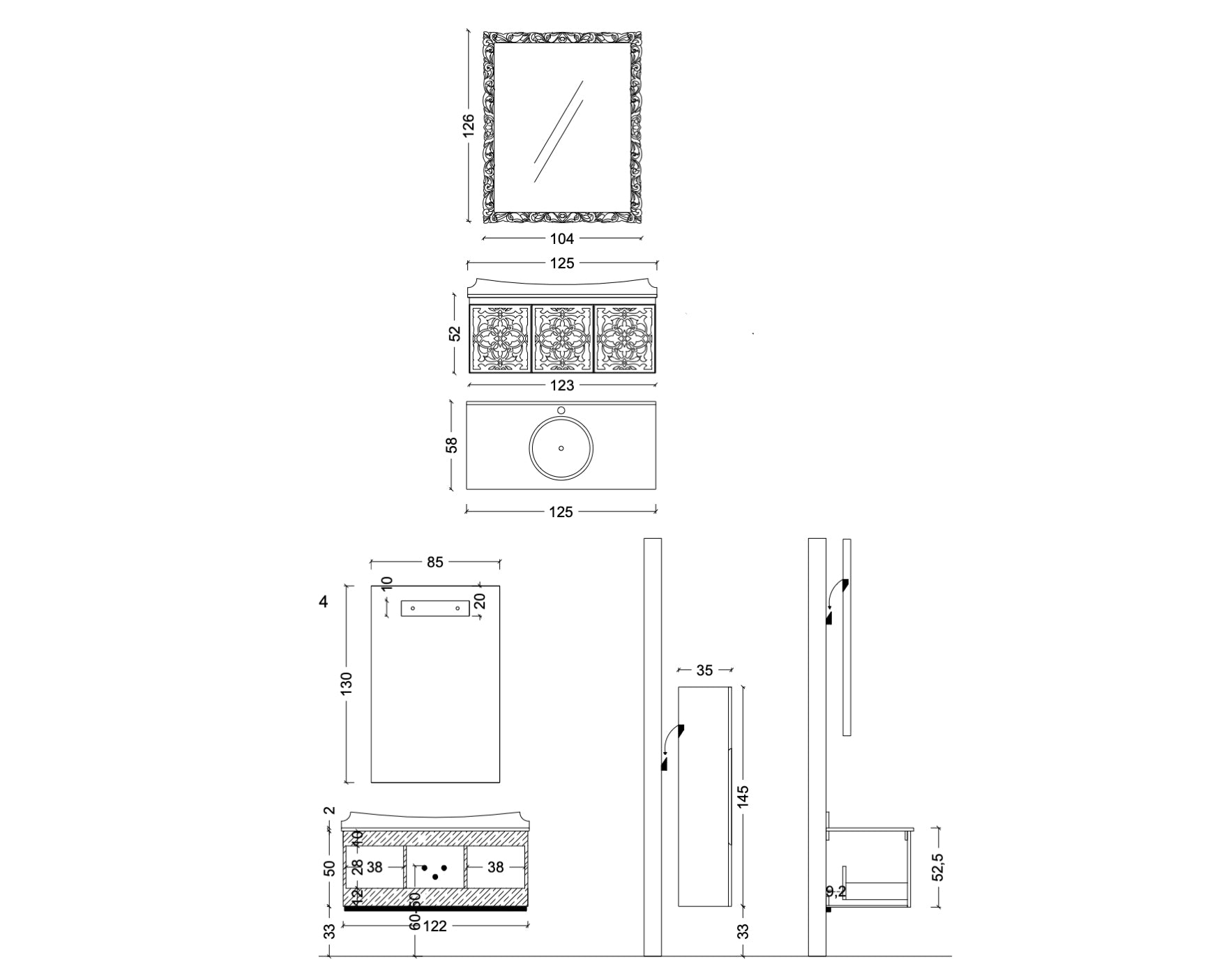 Neben dem Ensemble Anatolia Schwarz/Gold bieten wir zwei weitere Varianten für Ihr Luxusbad. Anatolia Weiß/Gold besticht durch eine elegante, gehärtete goldene Glasplatte, die dem Waschtisch seinen besonderen Charme verleiht. Für Liebhaber moderner Akzente ist Anatolia Schwarz/Weiß die ideale Wahl, mit seiner Star-Galaxy-Granitplatte und den klaren Linien im großen, schwarzen Spiegel.