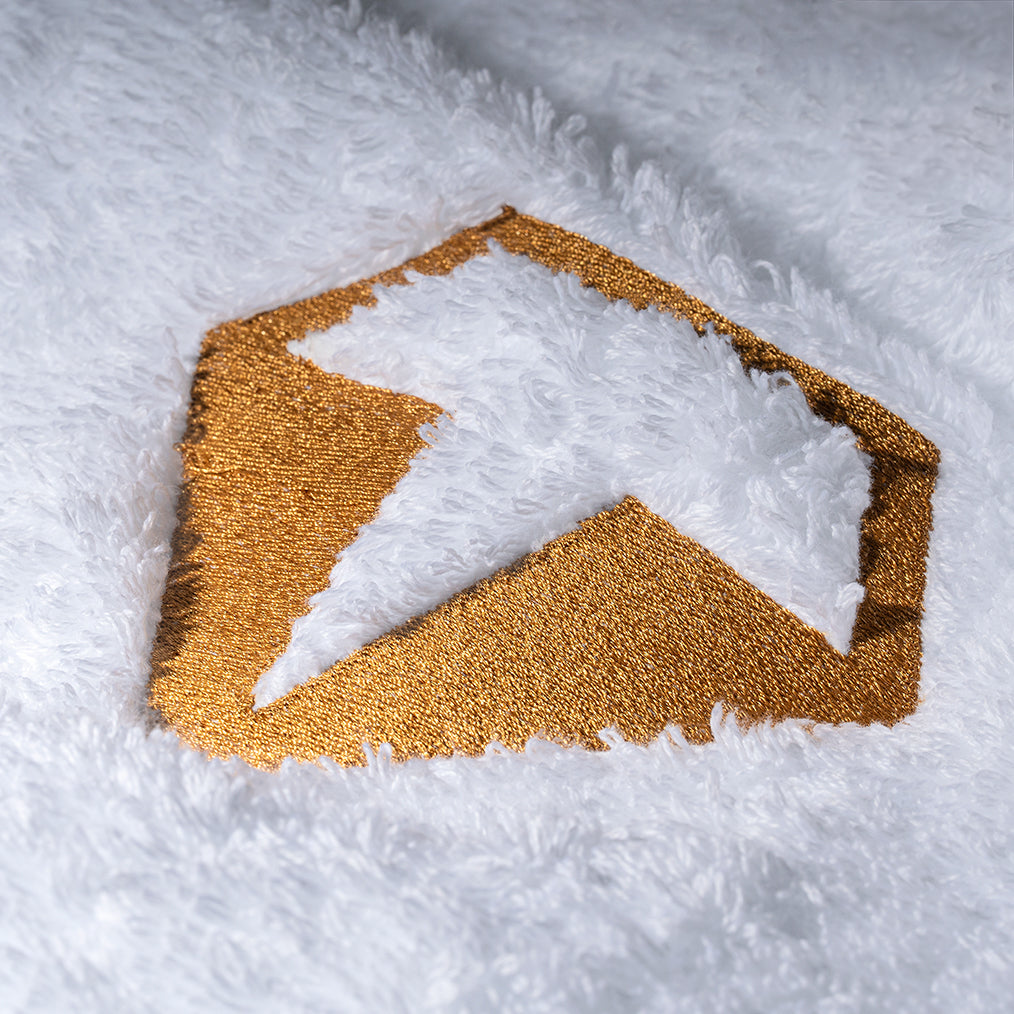 Diese Sonderedition ist ein Set aus vier Handtüchern, jedes einzelne veredelt mit dem goldenen Tiamont Diamanten als Signatur. Die Stickerei wirkt wie eine feine Gravur, mit metallisch schimmerndem Garn, dicht gesetzten Stichen und messerscharfer Kontur, die sich elegant und spürbar leicht erhaben in den Flor legt. Als ruhiger Blickfang hebt dieses Set die Atmosphäre des gesamten Badezimmers an und verleiht dem Raum eine klare, edle Präsenz, die beim ersten Blick wirkt und in Stille nachklingt.