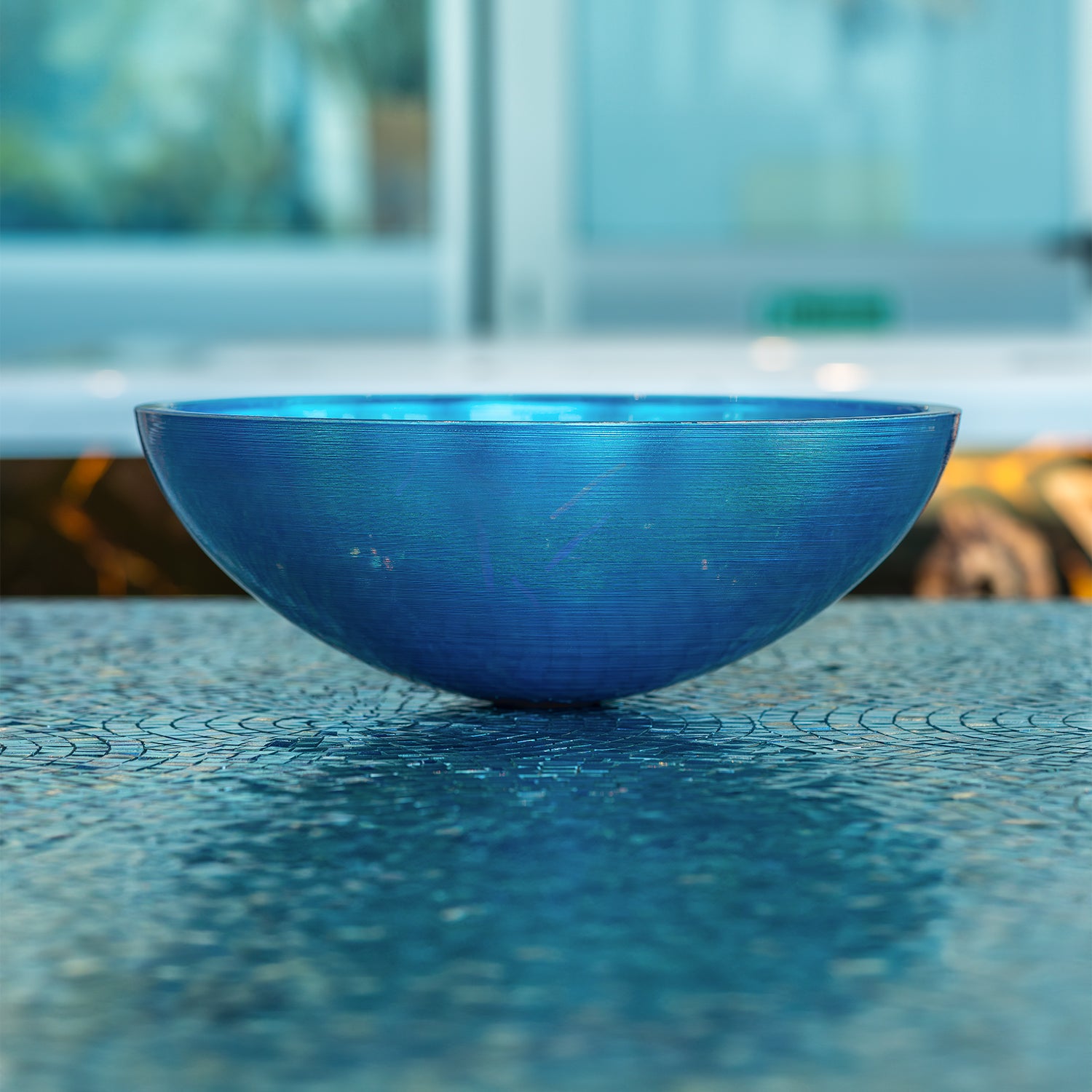 Dieses Glaswaschbecken wird aus hochwertigem, bleifreiem Soda-Lime-Glas gefertigt. Die Innenseite ist in einer sogenannten Rigata-Technik ausgeführt, einer feinen geriffelten Streifenstruktur im Glas, die das einfallende Licht bricht und der Schale eine besondere räumliche Tiefe verleiht.