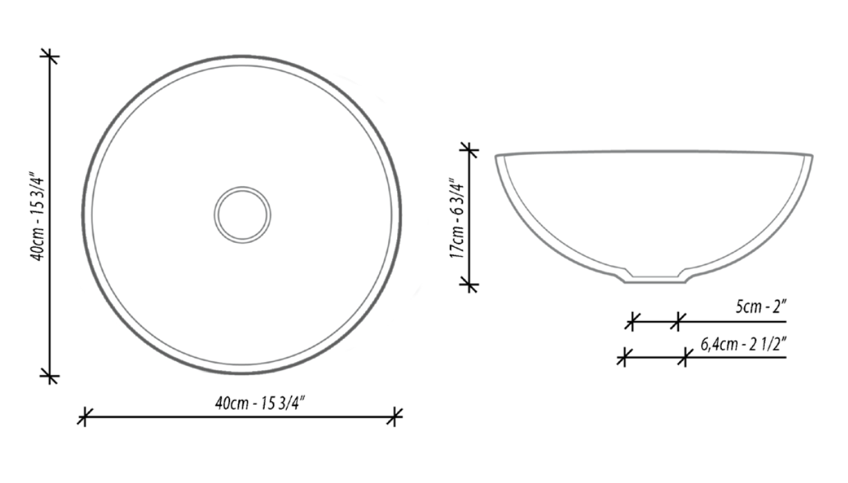 Rundes Aufsatzbecken mit 40 cm Durchmesser, ausgewogen und präsent auf der Platte.