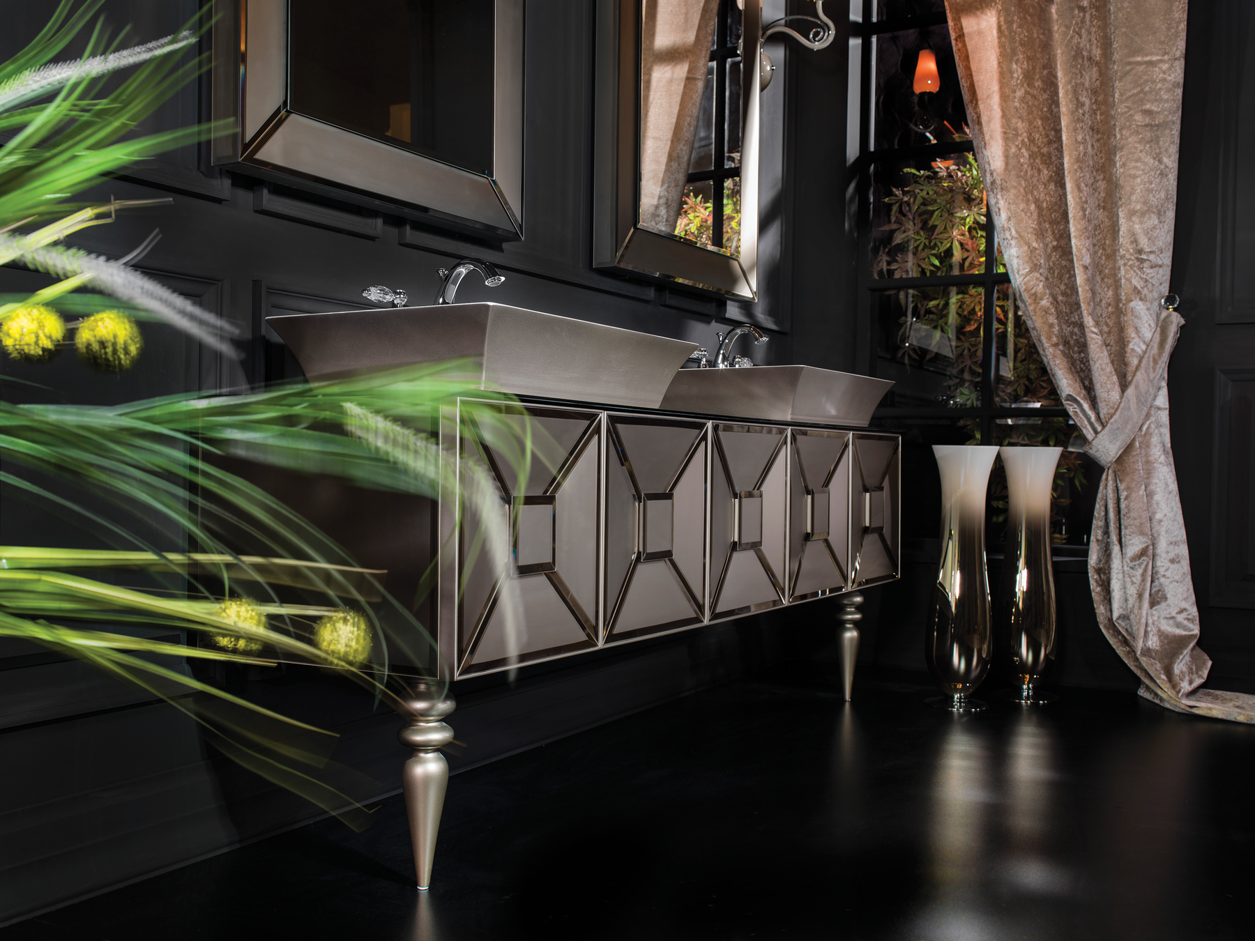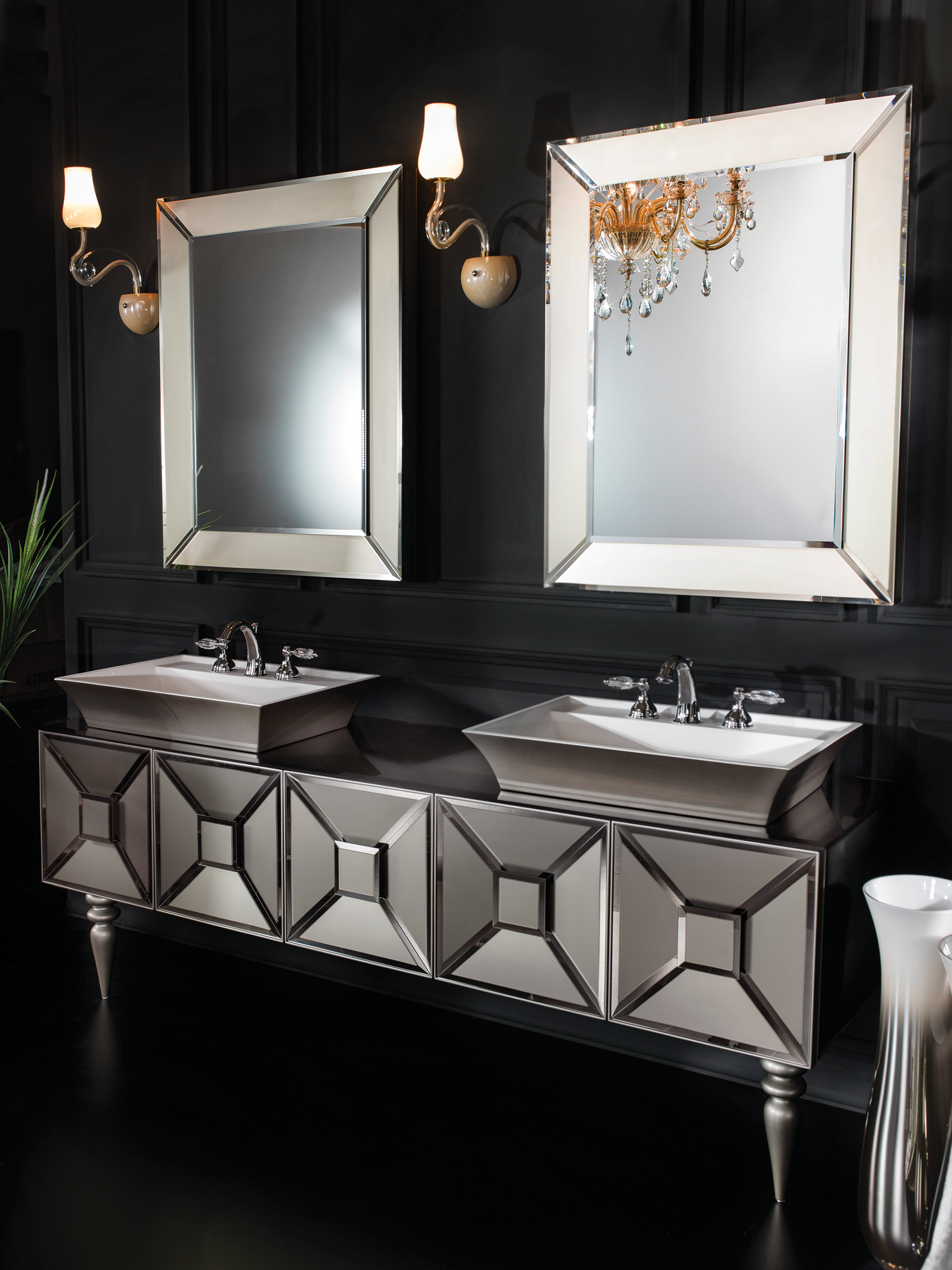 Luxuriöses, klassisches Design, modern interpretiert: Ein wahres Glanzstück ist unser Waschtisch Fiaba mit Doppelwaschbecken. Der mit geometrischen Strukturen verzierte, hochglänzende Korpus avanciert zum exklusiven Blickfang in einem der privatesten Rückzugsorte Ihres Zuhauses. Werten Sie Ihr Bad durch den stilvollen Waschtisch mit Aufsatzwaschbecken aus der Kollektion Avantgarde auf und verwöhnen Sie sich mit hochwertigem Badmobiliar aus dem Hause Armadi Art!